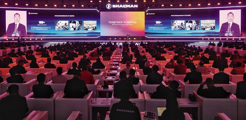 陕 汽 进 出 口 向 大 会 作SHACMAN营销工作报告及案例分享,并向优秀合作伙伴颁奖。当天下午,SHACMAN嘉年华车展在西安国际会展中心举办,10大功能展台集中展示了70辆卡车产品、X中心模块、后市场内容等,其中6000系列、SHAC⁃MAN-BLU系列、SHACMAN-