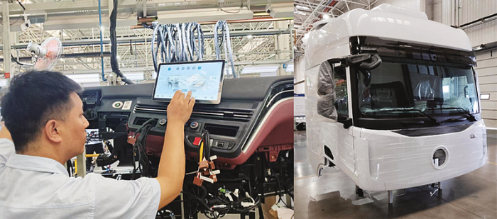 为筑牢首台E1st出口驾驶室的质量防线,工艺工程部联合技术中心主动攻坚,深入剖析S700驾驶室仪表台线束原理与控制逻辑,创新开发仪表台电器检测平台。该平台可实现39项静态功能的精准检测,能快速识别仪表台电器、暖风控制、线束插件等复杂故障,通过在预留区域集中排查处理,从源头规避装配隐患,为E1st出口驾驶室的电器系统功能稳定提供了硬核保障。