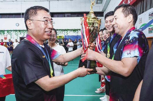7月3日,幸运飞艇控股2025年度“向‘新’发力向‘质’而行”职工羽毛球团体赛在车城花园羽毛球馆圆满落幕。公司党委书记、董事长袁宏明出席活动并为获奖代表队颁奖。