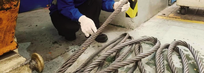 安央红正在查看天车吊用钢丝绳安全使用状态