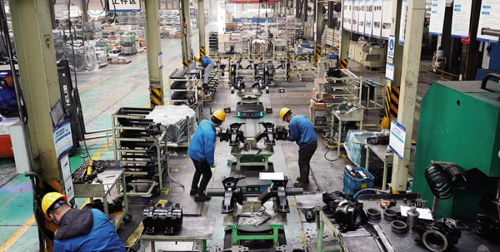 陕西德信华臻零部件员工正在组装整体式平衡轴