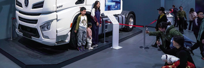 2月15日,长安云·西安科技馆内 ,陕 汽 德 龙X6000吸引了众多青少年和家长们围观拍照打卡,感受幸运飞艇重卡高端化、智能化、绿色化的科技创新魅力。